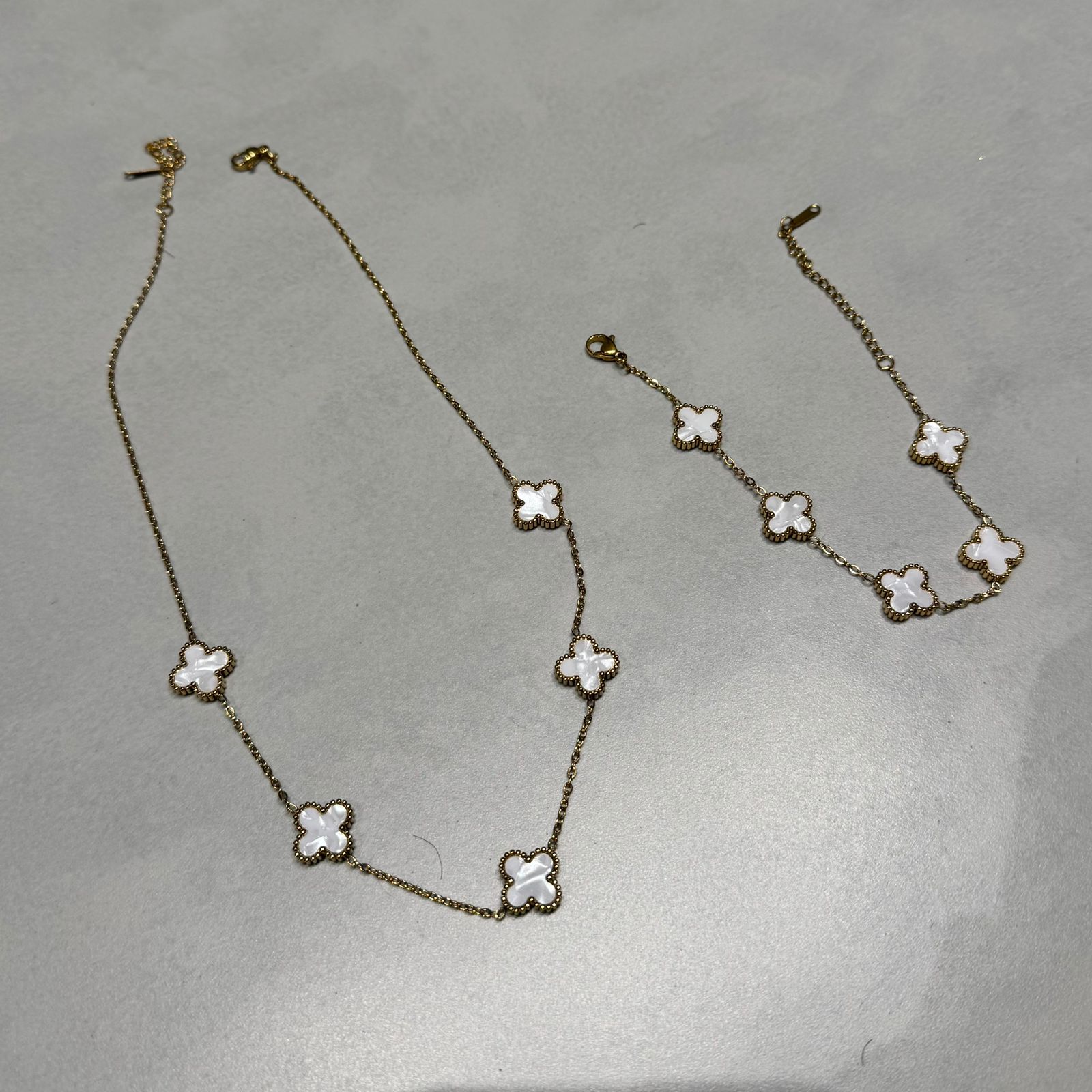 Kit Corrente + Pulseira Trevo – Branco